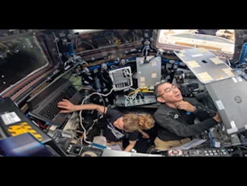 新型宇宙ステーション補給機(HTV-X)1号機をISSのロボットアーム(SSRMS)で把持する油井亀美也宇宙飛行士とサポートするジーナ・カードマン宇宙飛行士 / キューポラ / 本映像は4K(3840×2160)及びHD(1920×1080)で提供が可能 / 撮影日:2025年10月30日(日本時間)