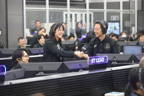 新型宇宙ステーション補給機(HTV-X)1号機の把持成功を喜ぶHTV-X運用管制室の様子 / 筑波宇宙センター(TKSC) 宇宙ステーション運用棟 HTV-X運用管制室 / 撮影日:2025年10月30日(日本時間)
