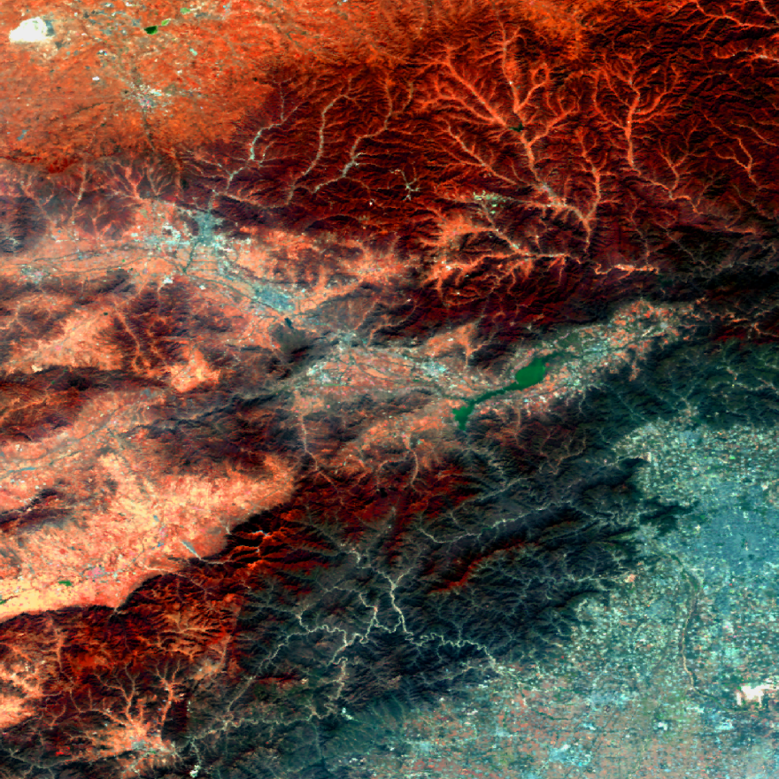 気候変動観測衛星「しきさい(GCOM-C)」が観測した北京の紅葉 観測日:2023年10月22日 観測地:中国、北京 観測衛星:気候変動観測衛星「しきさい(GCOM-C)」