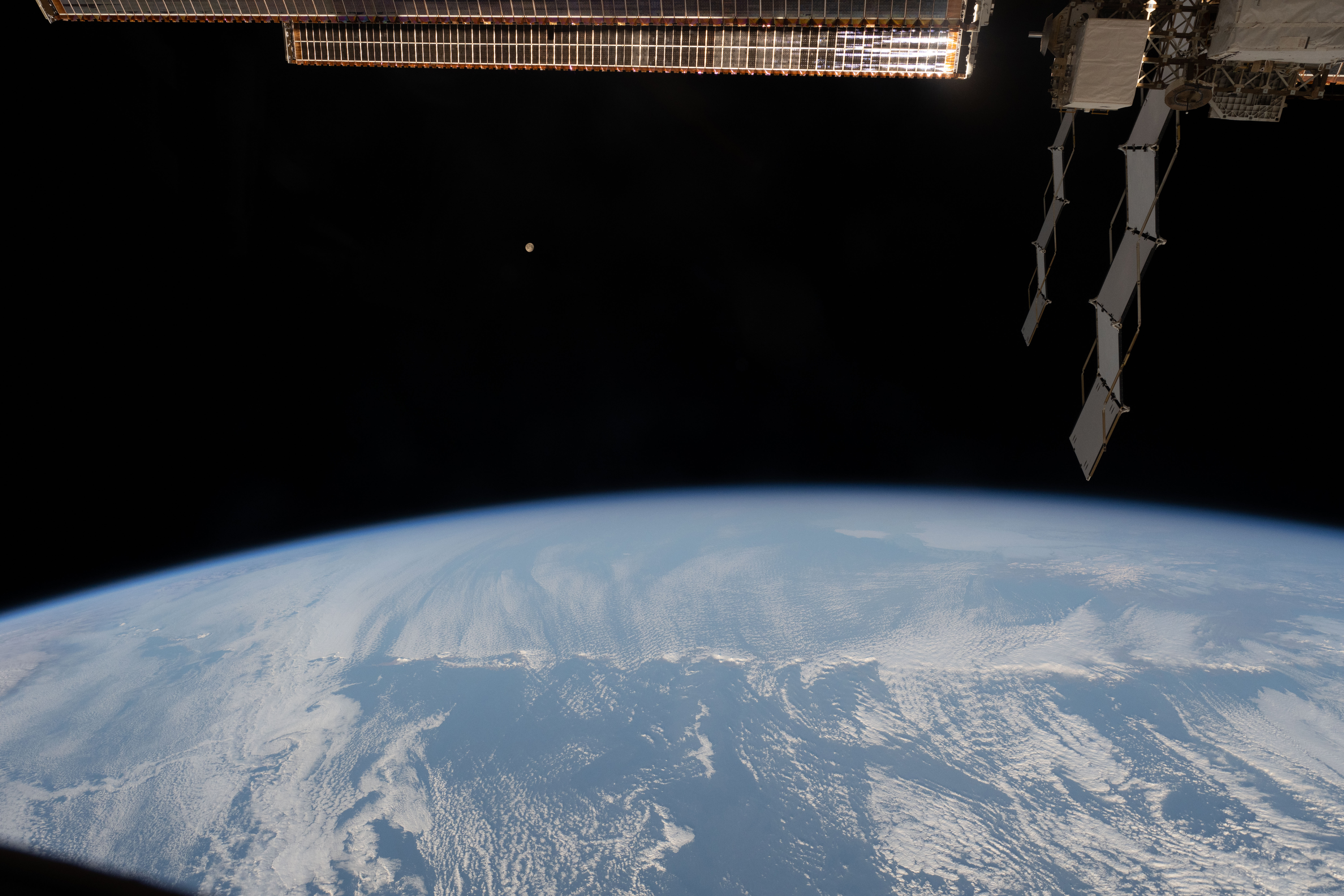 ISSから撮影された月と地球