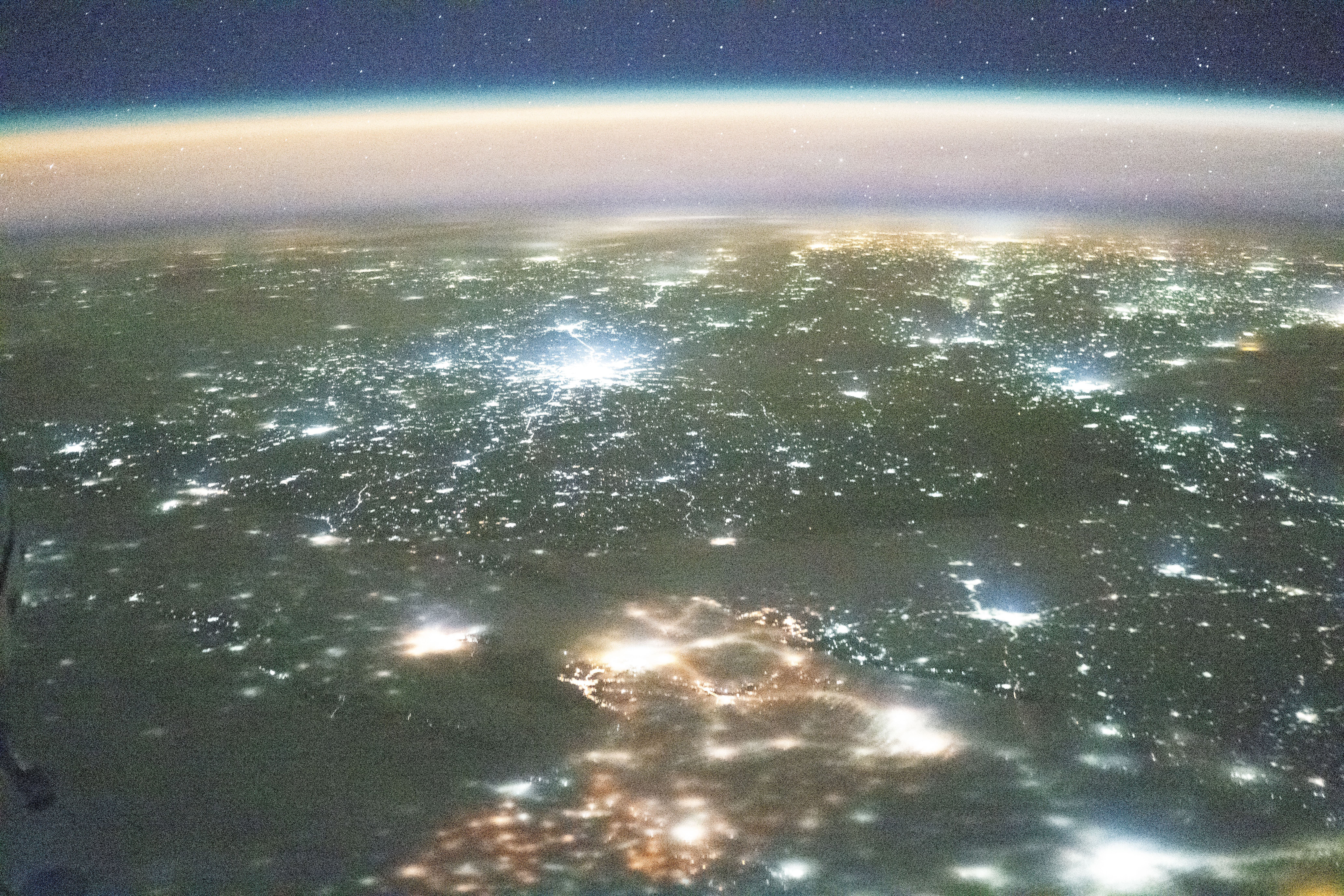 ISSから撮影されたモスクワ(ロシア)の夜景