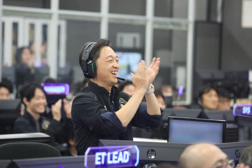 HTV-X1号機の把持成功を喜ぶHTV-X運用管制室の様子
